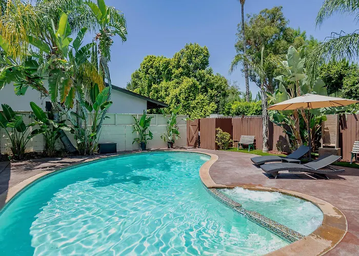 Deze 3-slaapkamer Cozy Home With Pool And Jacuzzi Minutes From Universal Studios Los Angeles ligt op 25 minuten lopen van Westfield Fashion Square en heeft een privézwembad, een bubbelbad om in te ontspannen. De 3-badkamer villa biedt uitzicht op het zwembad en nodigt gasten uit om het Wilacre Park te bezoeken, op 4 km verderop.